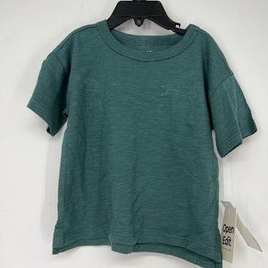 Open Edit Baby Short Sleeve Crew Neck T-Shirt Side Slit Ivory Green Size 18M NWT