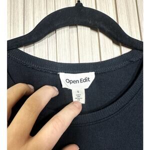 Open Edit Black Ribbed Bodycon Mini T-shirt Dress Size S