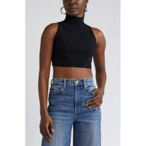 Open Edit Black Sleeveless Mockneck Pullover Stretch Cropped Top Sz Large NEW