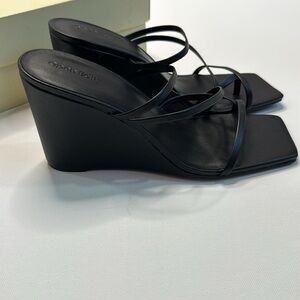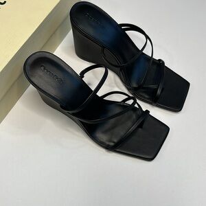 Open Edit black strappy wedge sandals. Square toe. Slip on style. New in box, never worn. Womens size 10.