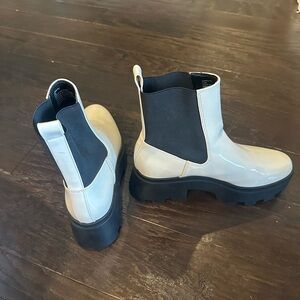Cream and black. Patent feel. Worn only a few times. Great condition.