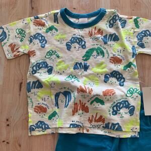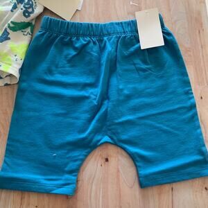 Open Edit Boxy T-Shirt & Shorts Set. Two piece. Blue shorts with drawing print on top. Shorts have elastic waist. 100% organic cotton. B2