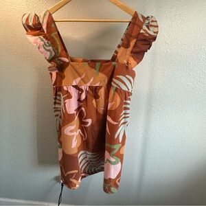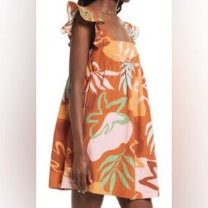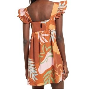 Open Edit Burnt Orange Multicolor Tropical Vacation Dress Medium seersucker