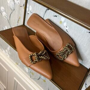 Open Edit Cognac Pointed Toe Mule Slide Shoes with Metal Bow- Size 9.5