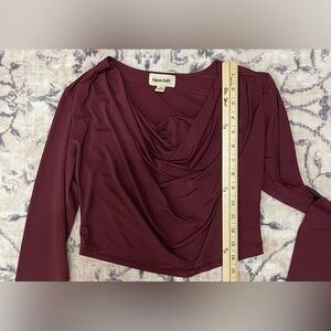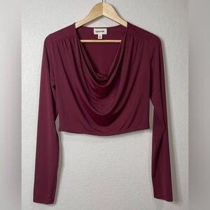 Open Edit Cowl Neck Long Sleeve Crop Top Size Small Burgundy London NWOT