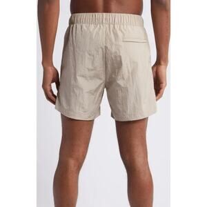 Open Edit Crinkled Nylon Swim Trunks in Tan Thread
