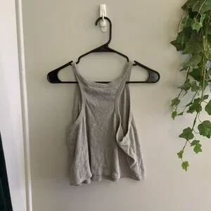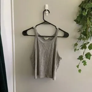 Super cute, especially under an oversized shacket or cardigan. Gray and ribbed, opaque.