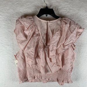 Open Edit Crop Top Womens XL Pink Sleeveless Ruffle Crew Neck Linen Ruched 6387