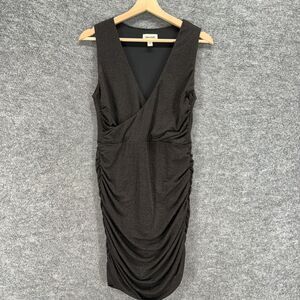 Open Edit Dress Women M Medium Black Sheath Midi V-Neck Sleeveless Lined Casual