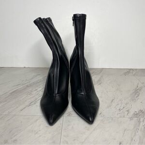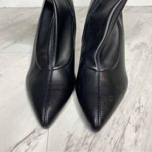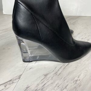 Open Edit Erika Black Faux Leather Pointy Toe Wedge Heel Booties 7 1/2 M
