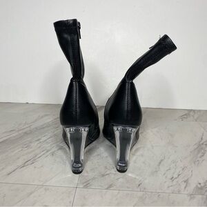 Open Edit Erika Black Faux Leather Pointy Toe Wedge Heel Bootie 7 1/2 M