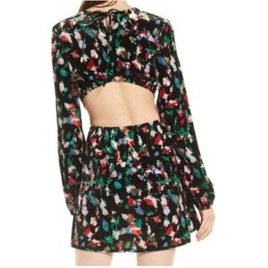 Open Edit Floral Print Open Back VelourLong Sleeve Minidress Size M