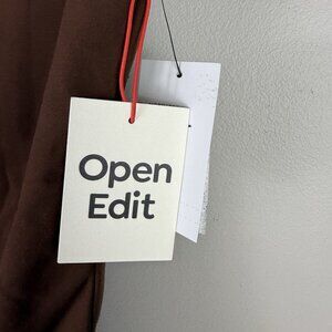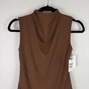 Open Edit Funnel Neck Brown Sleeveless Bodysuit Double Layer Minimalist Chic S