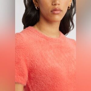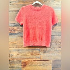 Open Edit Fuzzy Coral Short Sleeve Sweater NEW All charm, no chill—this irresistibly fuzzy short-sleeve sweater keeps things light, playful and just a little bit mischievous. Size med, NWOT. Current season. MRSP $70.
