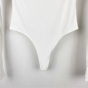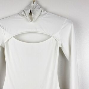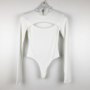 Open Edit Ivory Cut Out Front Long Sleeves Turtleneck Thong Bodysuit Size XS