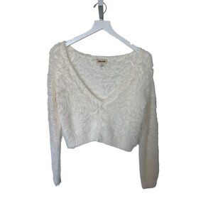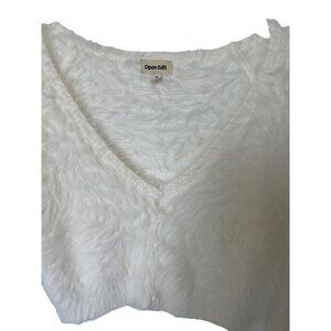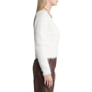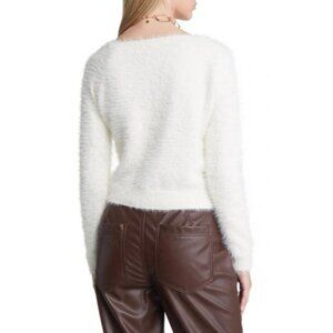 Open Edit Ivory Eyelash Fluffy Knit Cropped Cardigan