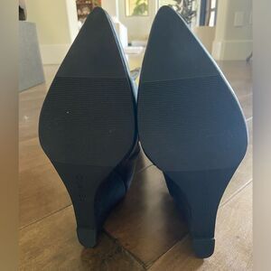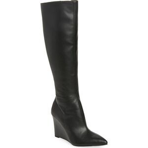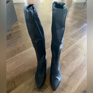 A pointy toe and stiletto heel frame a trend-savvy boot fashioned in an over-the-knee silhouette for contemporary allure. 3 3/4" heel (size 8.5) 21 3/4" shaft; 14 3/4" calf circumference Synthetic upper and lining/rubber sole Imported