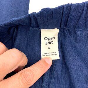 Open Edit Linen Blend Wide Leg Trousers In Navy Blazer Size Medium NWOT $69 MSRP