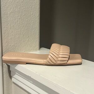 Open Edit Linx Slide Sandal Women's Woven Vamp Strap Beige Size US 5.5M