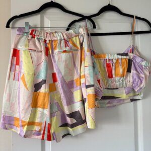 Easily one of my most complimented outfits. This matching set is so chic with heels and can easily be dressed down with slides for summer brunch with the girls. Quality is pretty unmatched and the shorts are high-waisted loose/baggy, which made them super flattering. Selling as the full set.