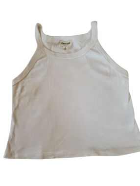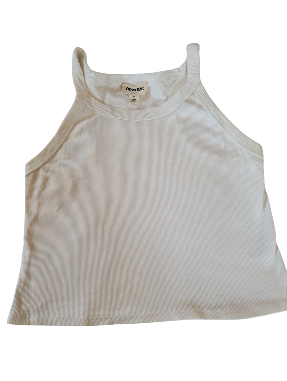 Open Edit white ribbed racer back tank top. Cropped. Great quality, thick ribbed, cotton blend