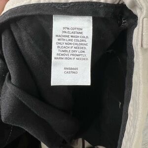 Features: Machine washable, Flat front, Belt loops, Button closure, Two back pockets