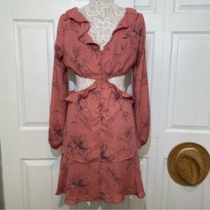 Open Edit NEW Nordstrom Cut Out Long Sleeve Ruffle Mini Dress Pink Floral Size L