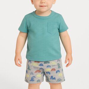 Open Edit Nordstrom Baby Clothes Top & Two Shorts Set 6M Green Multicolor NEW