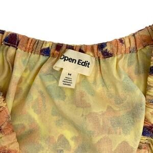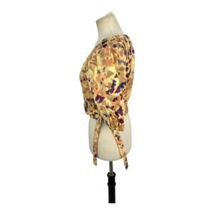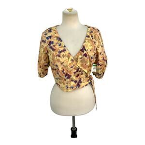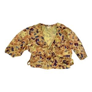 Open Edit Puff Sleeve Wrap Blouse Yellow Floral Size Medium NWOT $59 MSRP