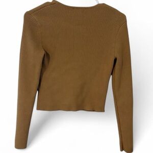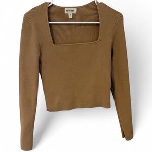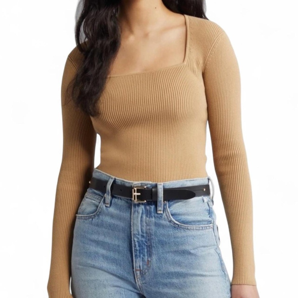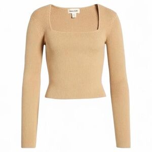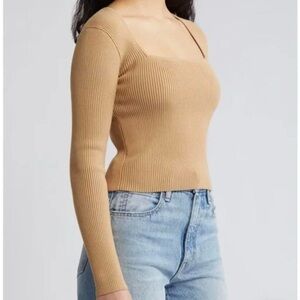 Super cute and versatile neutral tan ribbed knit square neckline sweater top by Open Edit from Nordstrom! Stretchy and fitted.