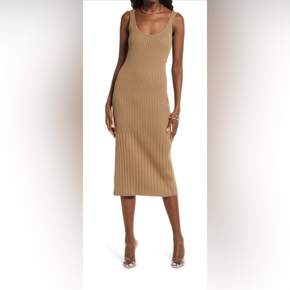 Worn once gorgeous knit dress. COLOR IS TAN 🧸 (white dress is just to show design/style)