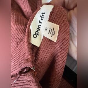 Open Edit Rust Cut Out Side Ribbed Long Sleeve Dress