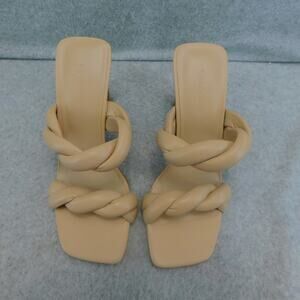 Open Edit Sandals Womens Tan Braided Double Strap Slip On Heels - Size 6.5 New