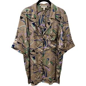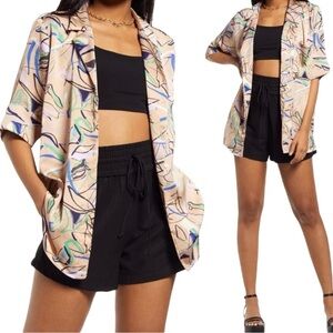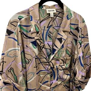 Open Edit Satin Camp Button-Up Shirt in Color Ivory Birch Size M Oversized