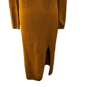 Open Edit Scoop Neck Long Sleeve Rib Sweater Dress Camel Brown Size Large