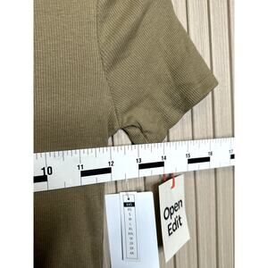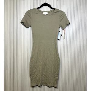Open Edit Short Sleeve Ribbed Bodycon Dress Tan Women's Size XXS