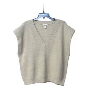 Open Edit Shoulder Pads Sweater Vest, Beige Humus Color, Sz. XL