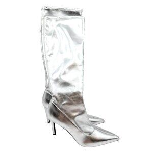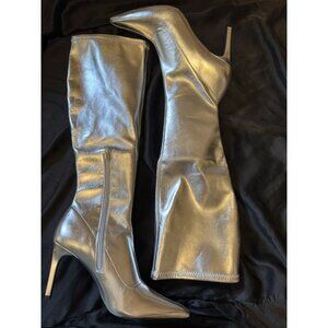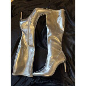 Open Edit Silver Tall Stiletto Boots 9M NEW