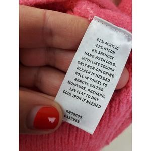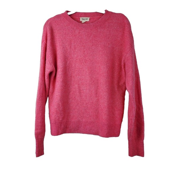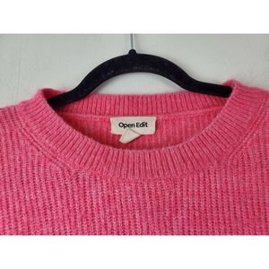 Open Edit Small Pullover Sweater Ribbed Knit Women Hot Pink Barbie Crew Neck