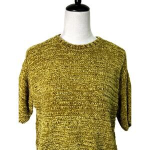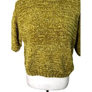 Open Edit Sweater Short Sleeve Crop Jumper Loose Knit Green Gold W Medium NWT