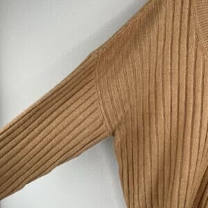 Open Edit Tan V-Neck Ribbed Knit Long Sleeve Drop Shoulder Pullover Sweater XL