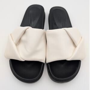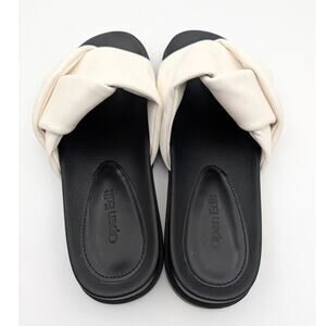 Open Edit Twisted Knot Flat Sandals Women's White/Black Size US7.5M EU38