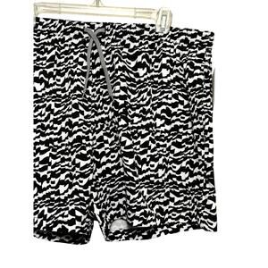 Open Edit Volley Swim Trunks Elastic Waistband Built-In Mesh Black/White XL NWT