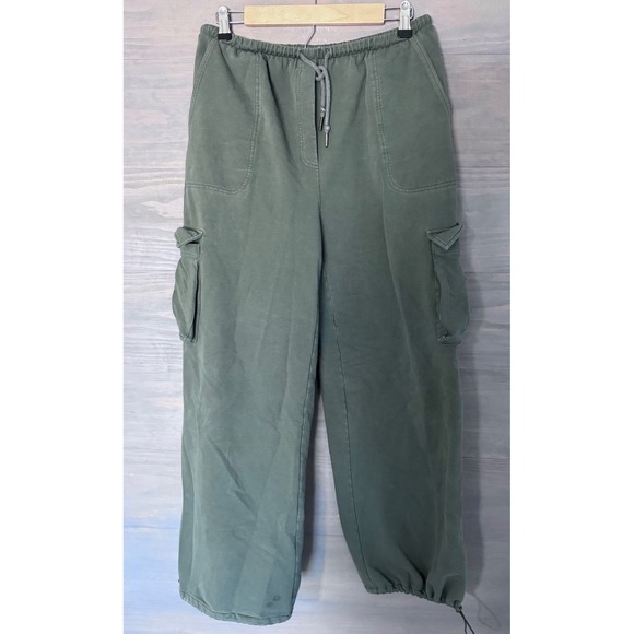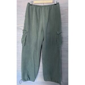 Open Edit Wide Leg Oversized Cargo Sweat Pants Green Size Medium