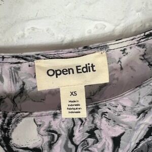 Open Edit Women Marbleized Asymmetrical Blouse Top Long Sleeve Multicolor SZ XS