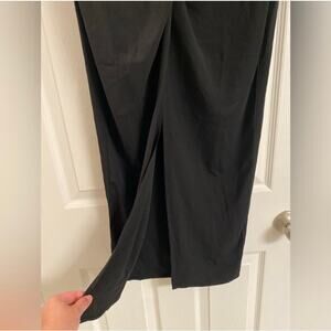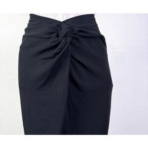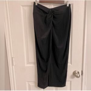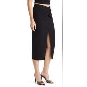 Open Edit Women's Black Knot Front Midi Skirt Slit Date Night Glam Size Small