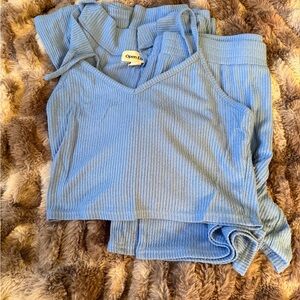 Experience ultimate comfort with the Open Edit Women's Pajama Set. This blue ribbed set is perfect for a relaxing night in.