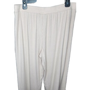 Open Edit Womens Large Beige Ribbed Wide Leg Casual Pants Elastic Waist NWOT