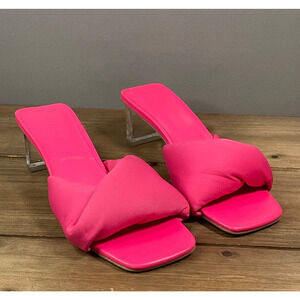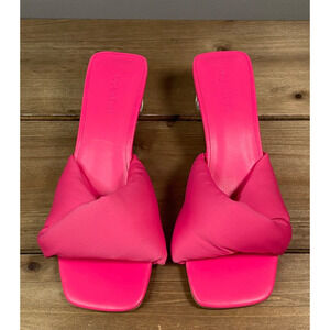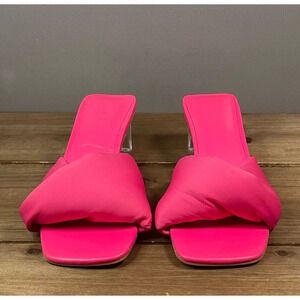 Open Edit Women's Puffy Slide On Sandals Size 6 Hot Pink Clear Heel