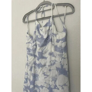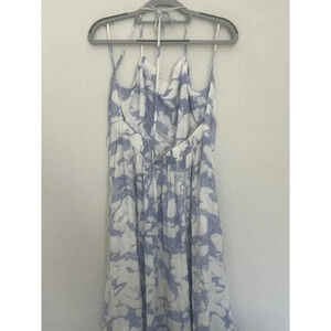 Open Edit Womens Size Large Sundress Marble Print Open Back White and Blue